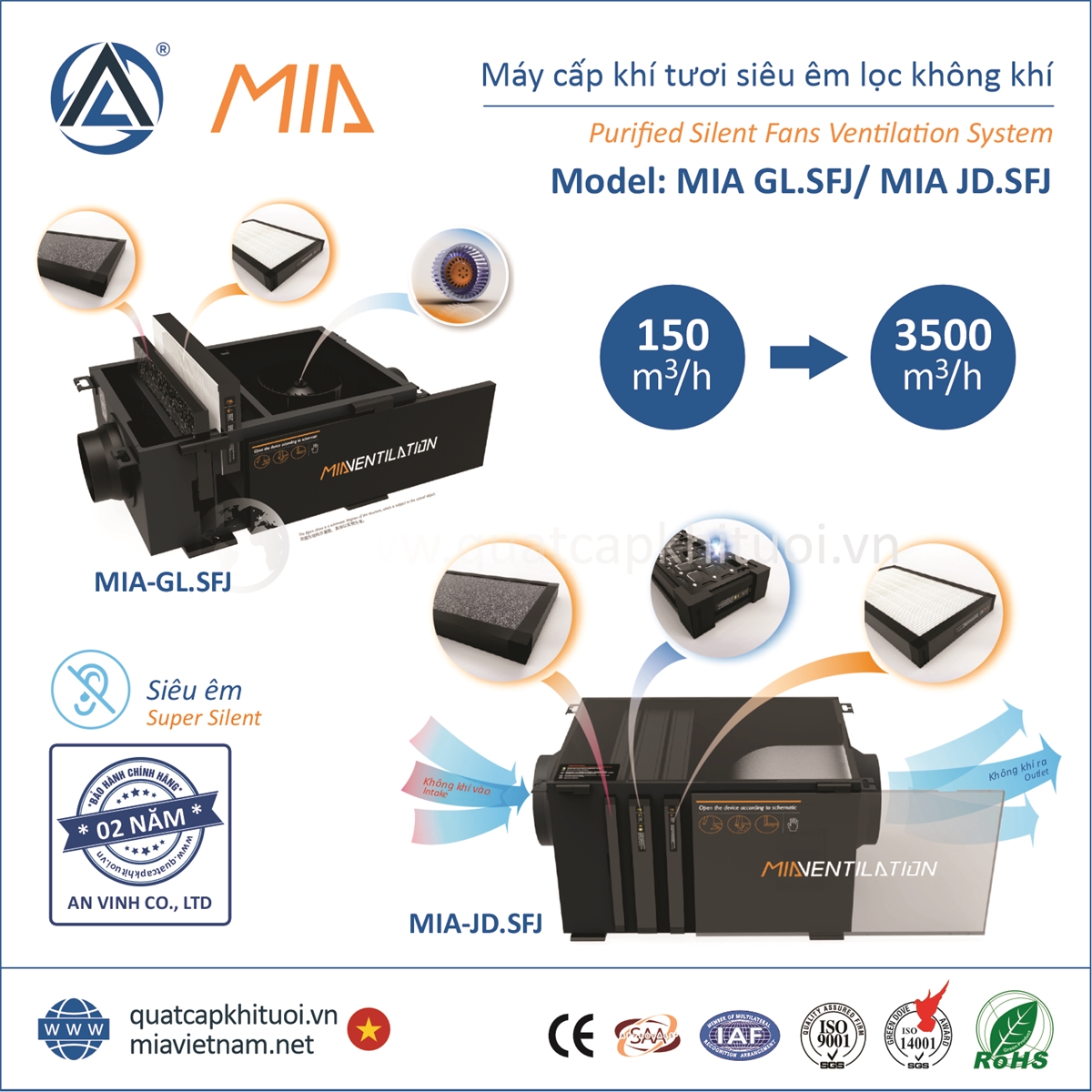 MIA có hơn 10 năm kinh nghiệm sản xuất các sản phẩm thông gió và sản xuất ERV (thiết bị thông gió khôi phục năng lượng), được phát triển bởi đội ngũ R&D của Nhật Bản. Các sản phẩm hiệu quả cao đến 96%.